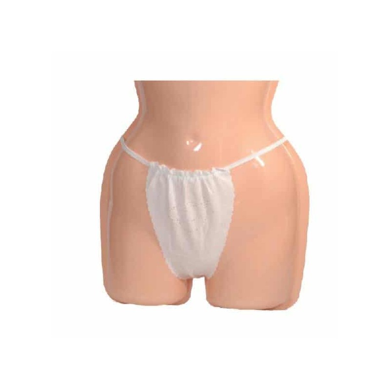 Białe stringi kosmetyczne. Stosowane w kosmetyce przy depilacji, zabiegach na ciało oraz w gabinetach masażu. Higieniczne i praktyczne. Wykonane z nieprzeźroczystej włókniny. Uszyte z eleganckim wzorkiem Dostępne w rozmiarach „ S”. Bardzo wygodne i ułatwiają pracę. Produkt ten jest polskiego producenta, stawiającego na wysoką jakość towaru. Pakowane po 10 sztuk w paczce.