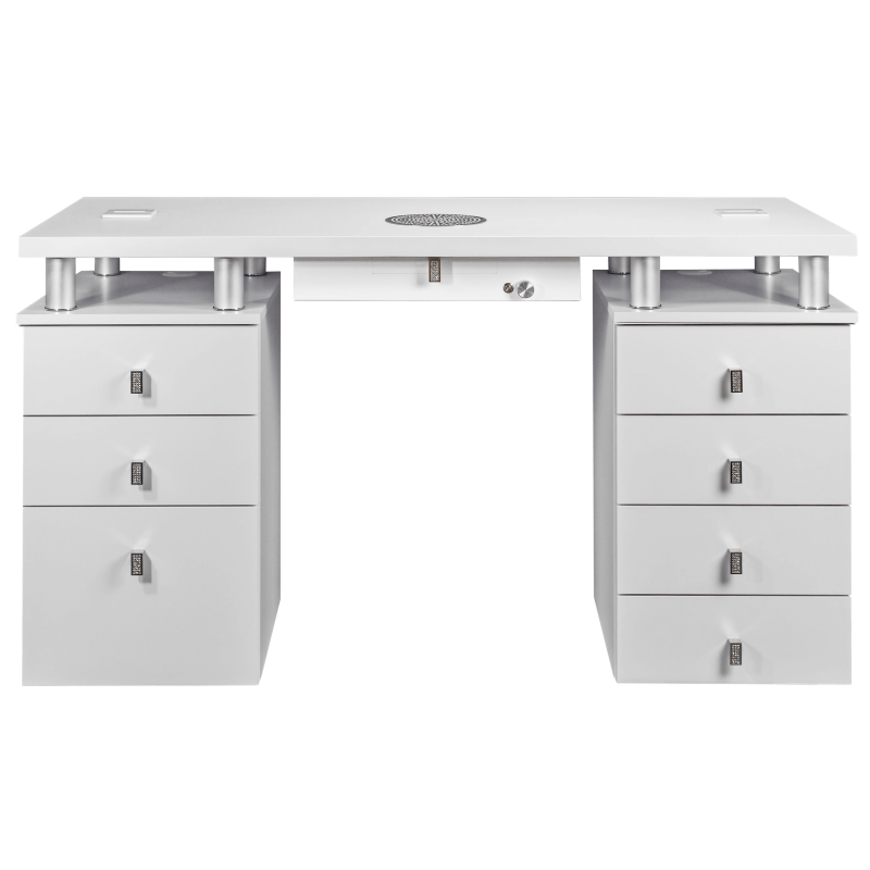 szufladami po obu stronach biurka. Do Twojej dyspozycji jest łącznie 7 szuflad z cichym