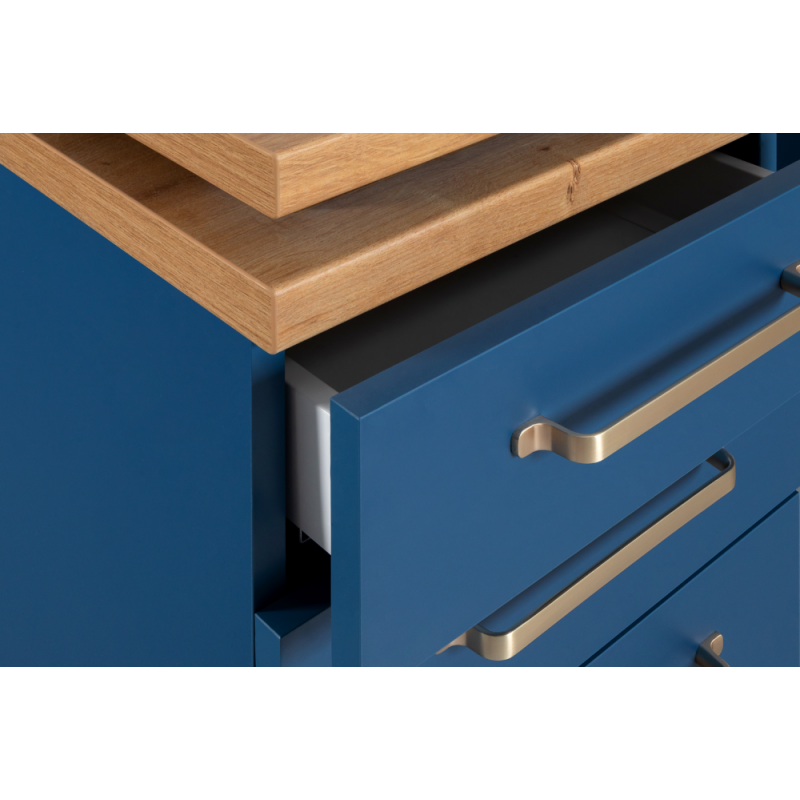 Pełną funkcjonalność i dużo miejsca na przechowywanie zapewniają dwa kontenery z szufladami po obu stronach biurka. Do Twojej dyspozycji jest łącznie 7 szuflad z cichym domykaniem. W każdym kontenerze znajdują się gniazda prądowe w ilości 10 sztuk oraz 2,5 mb przewodu zasilającego biurko.