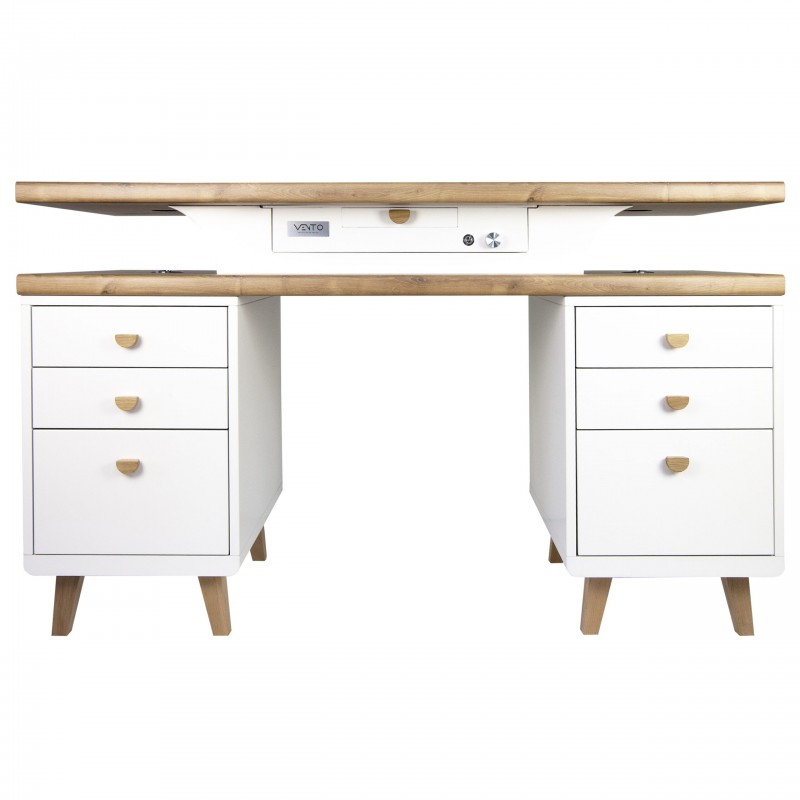 Biurko Soft z pochłaniaczem pyłu VENTO PRO PLUS- zostało wykonane z najwyższej jakości materiałów – blat pokryty został antybakteryjną powłoką stosowaną w laboratoriach.