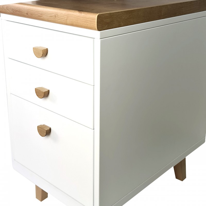 Nogi jak i uchwyty biurka są drewniane. Wszystkie materiały, które zostały użyte do wykonania biurka spełniają normy bezpieczeństwa oraz normy PN.