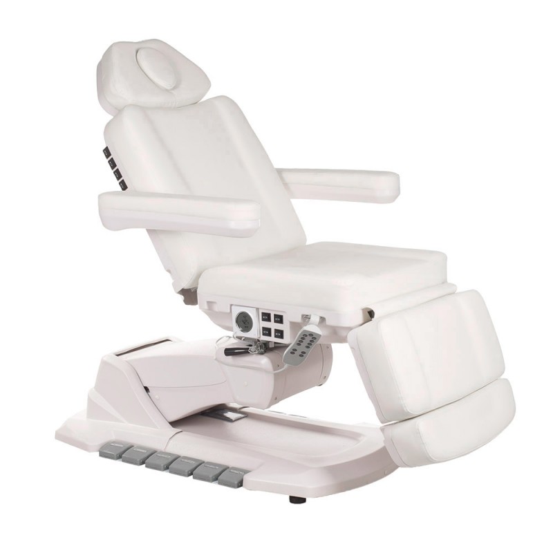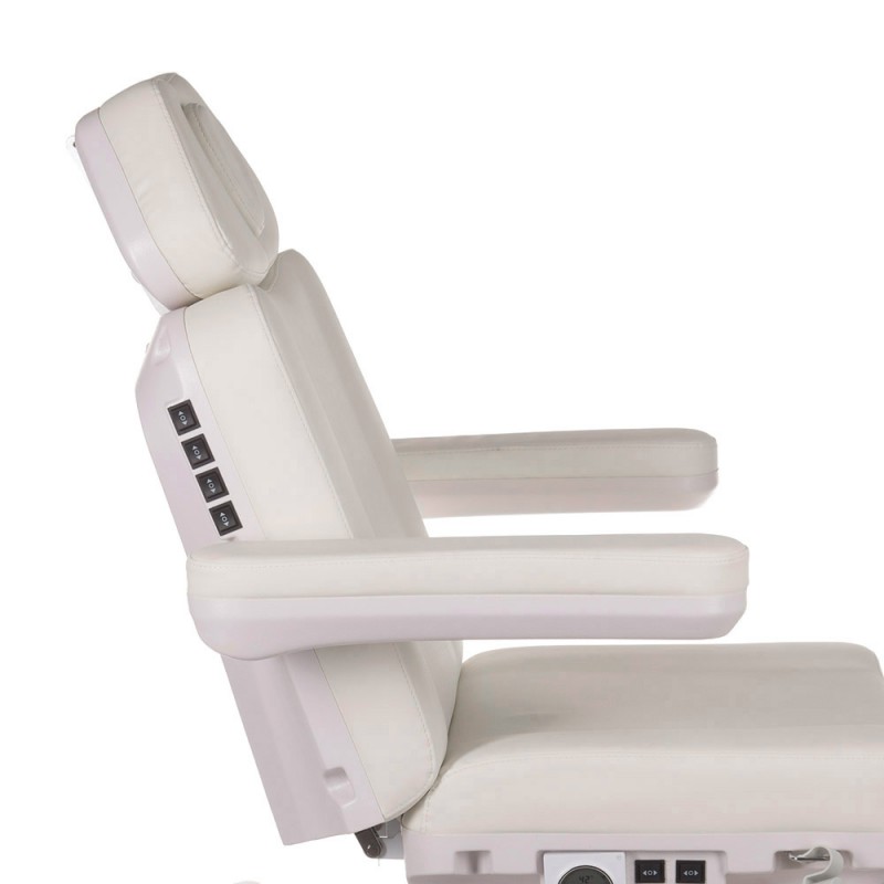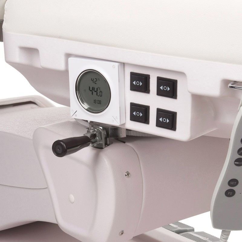 - Elektrycznie regulowana wysokość siedziska, kąt podparcia pleców, podnóżek i tzw kołyska.