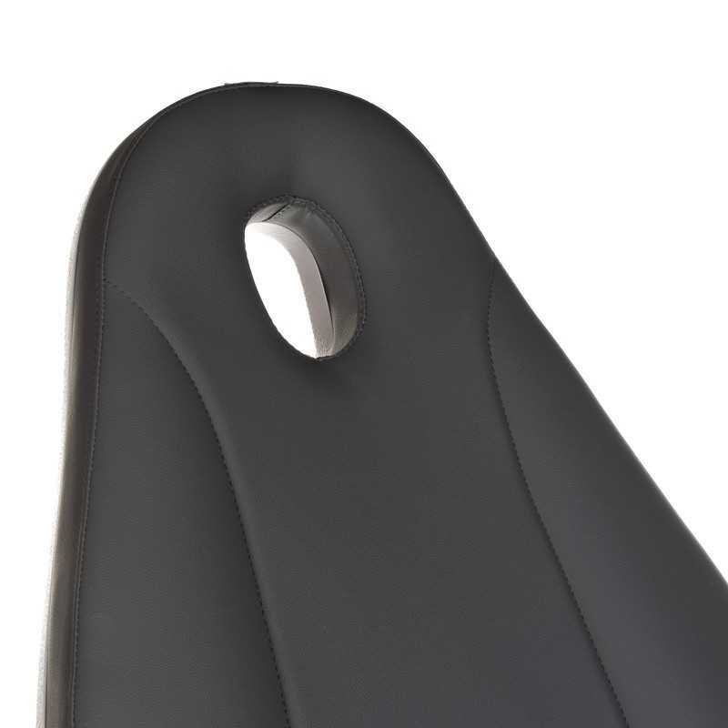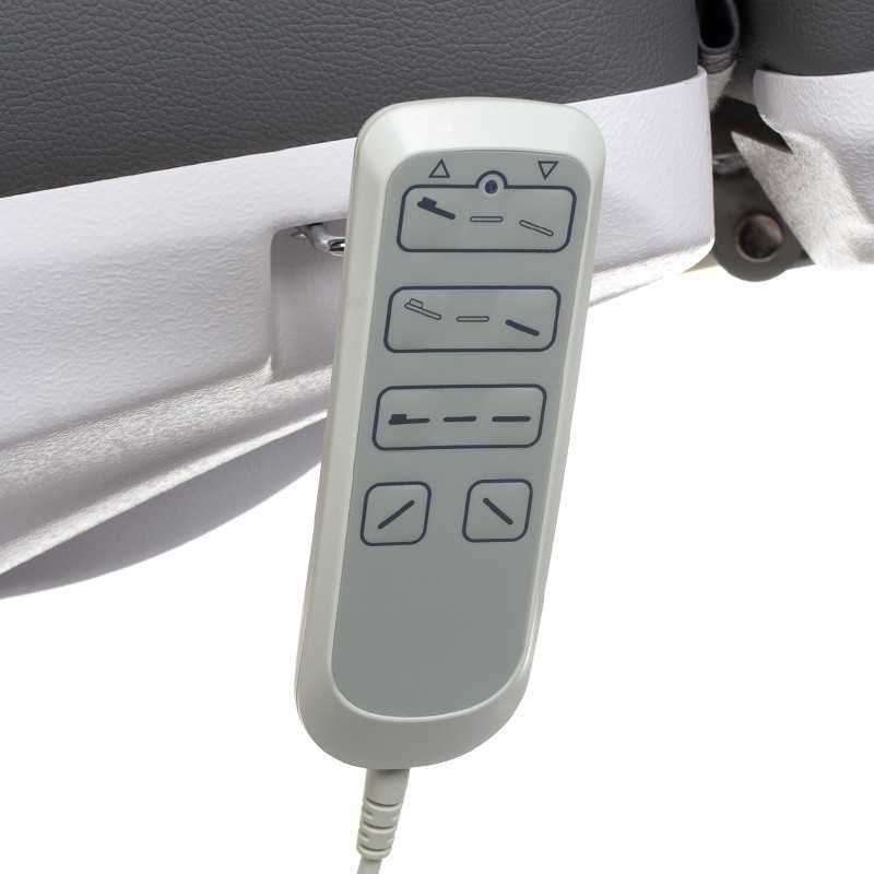 Elektrycznie regulowana wysokość siedziska, kąt podparcia pleców i nóg oraz tzw. kołyska.