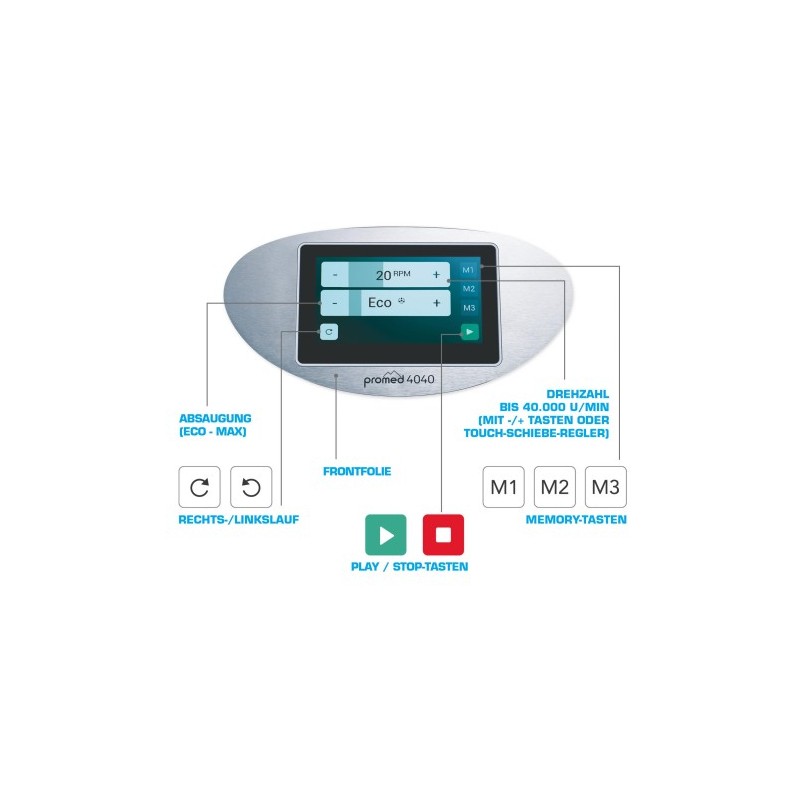 Frezarka renomowanej niemieckiej firmy PROMED. Model 4040 jest profesjonalny - nadaje się zarówno do pracy przy manicure oraz pedicure. Solidna rączka frezarki wyposażona w silnik bezszczotkowy zapewni wieloletnią pracę na najwyższym poziomie - rączka jest jedną z najlższejszych na rynku - tylko 95g - przy wielogodzinnej pracy pedicure każde kilka gram wpływa na szybsze zmęczenie nadgarstka.