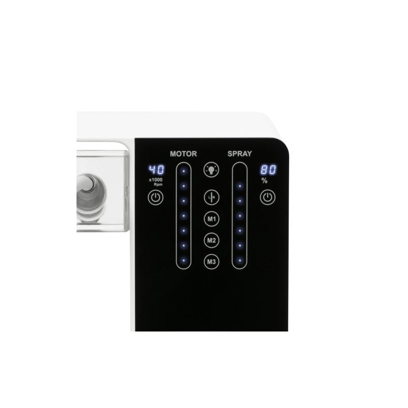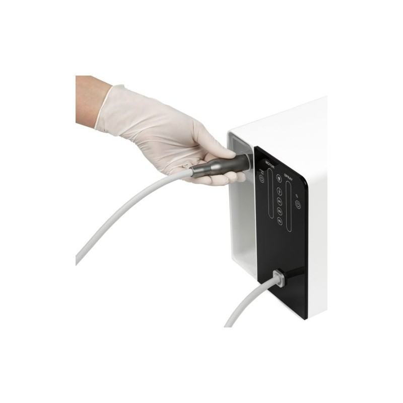 Frezarka podologiczna MasterMobile Spray Pododent EVO to kompaktowe, lekkie i proste w obsłudze urządzenie. Ze względu na mały rozmiar idealne dla mobilnych kosmetyczek, sprawdzi się również w salonach, w których mamy mało miejsca.