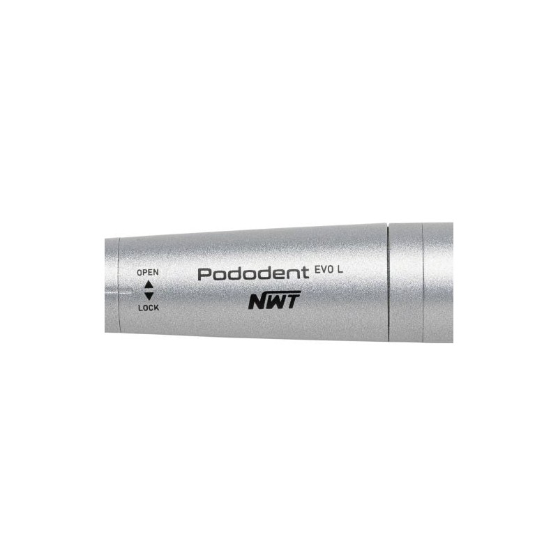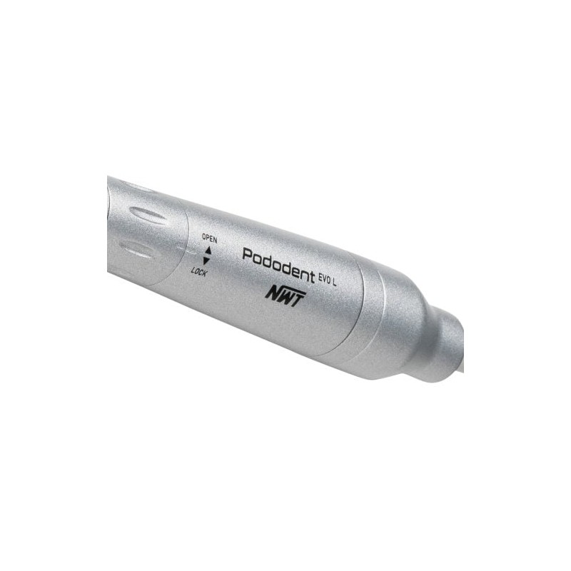 Rękojeść Pododent EVO posiada płaszcz wodny oraz bez szczotkowy mikrosilnik, dzięki któremu pracuje bardzo cicho. Charakteryzuje się wysokim momentem obrotowym – praca jest szybsza nawet na najniższych prędkościach. Zwiększona siła mocowania o około 30% pozwala na większy wybór frezów.