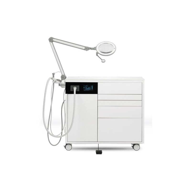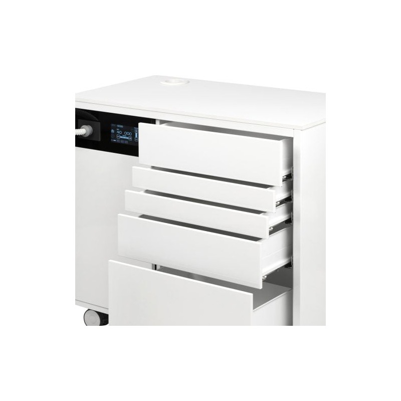 Kompaktowy i funkcjonalny unit podologiczny szafkowy produkcji niemieckiej firmy NSK z rękojeścią do pracy na mokro Pododent EVO i na sucho PDV 40 EVO.