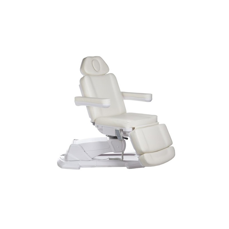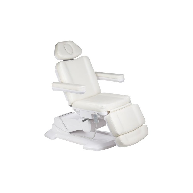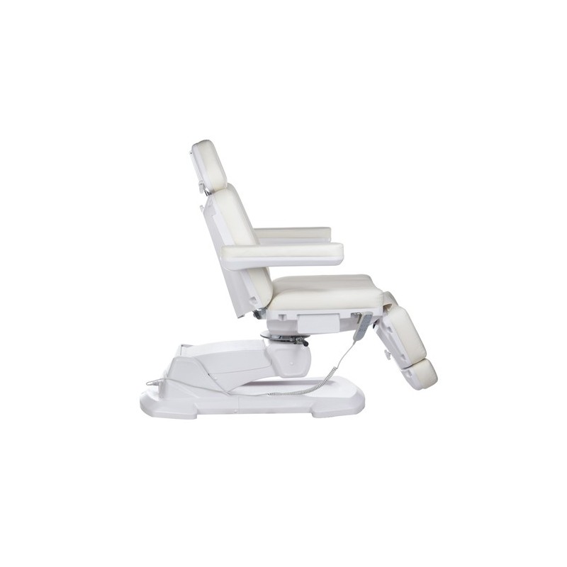 Elektrycznie regulowana wysokość siedziska, kąt podparcia pleców, podnóżek i tzw kołyska.