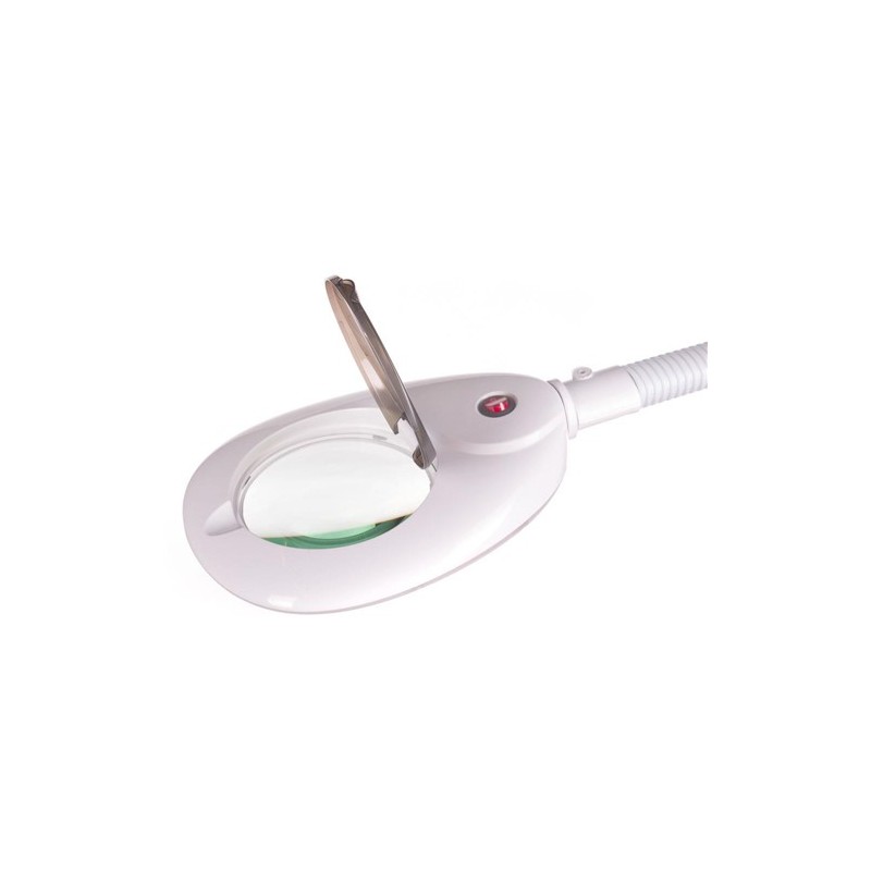 5. Lampa z lupą. Łatwa do przesuwania i ustawienia lampa powiększająca, posiada wysokiej jakości refrakcyjne szkło powiększające oraz wbudowany system oświetlający, które pozwalają na optymalne diagnozowanie skóry. Głowica lampy umieszczona jest na wysięgniku, ułatwiającym jej ustawienie na określoną odległość i wysokość. Ułatwia pracę podczas zabiegówkosmetycznych.
