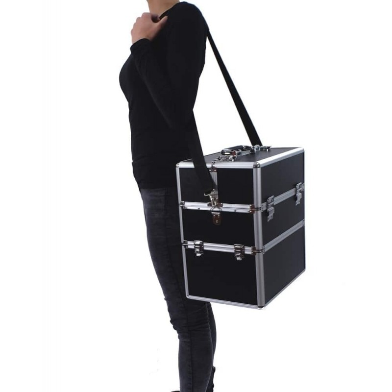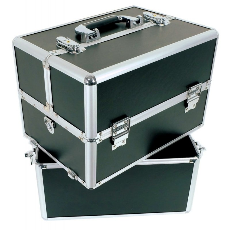Kuferek kosmetyczny duży 3 poziomy czarny