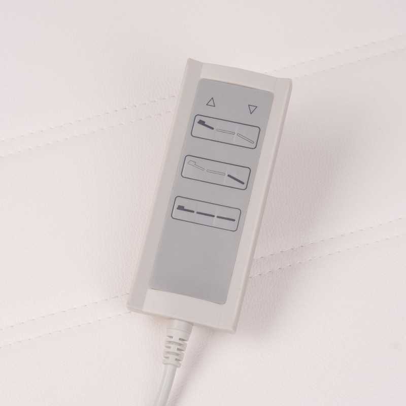 Elektrycznie regulowana wysokość siedziska, kąt podparcia pleców i podnóżek.