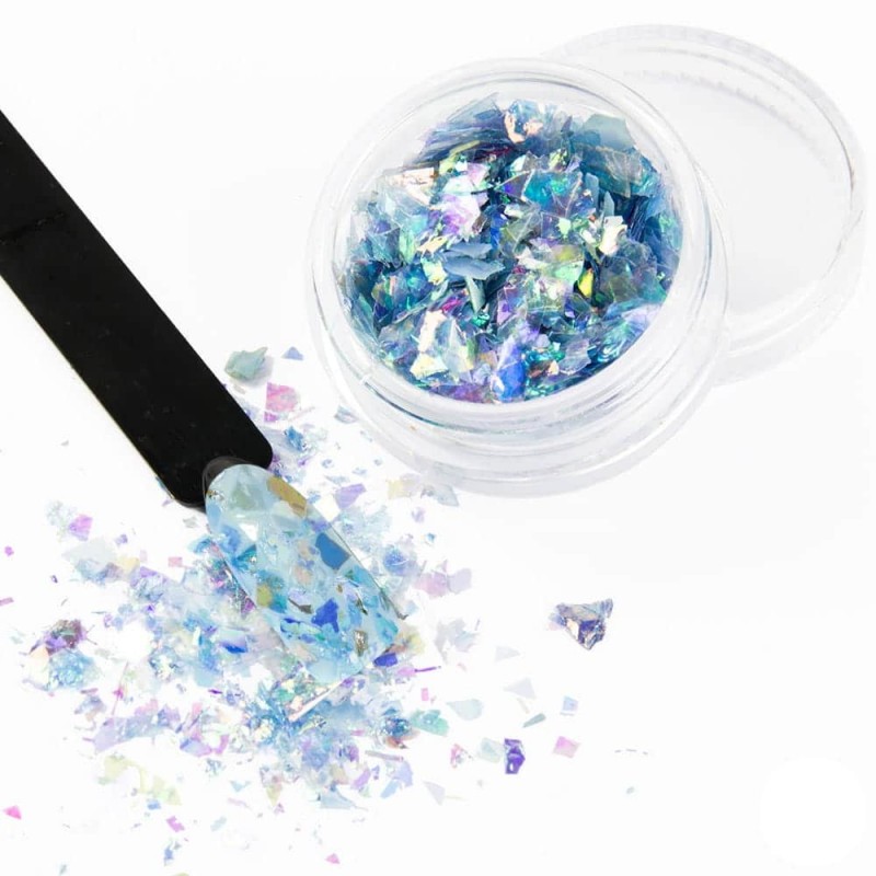 Oryginalny i niepowtarzalny, przyciągający spojrzenia zazdrości BROKEN MIRROR EFFECT. Drobinki odblaskowej folii wyglądające jak stłuczone lustro – przepięknie odbijają światło w różnych kierunkach, nadając stylizacji niezwykłego blasku. Możesz go zastosować na swój ulubiony kolor i cieszyć się z tego jak pięknie wyglądają Twoje paznokcie.