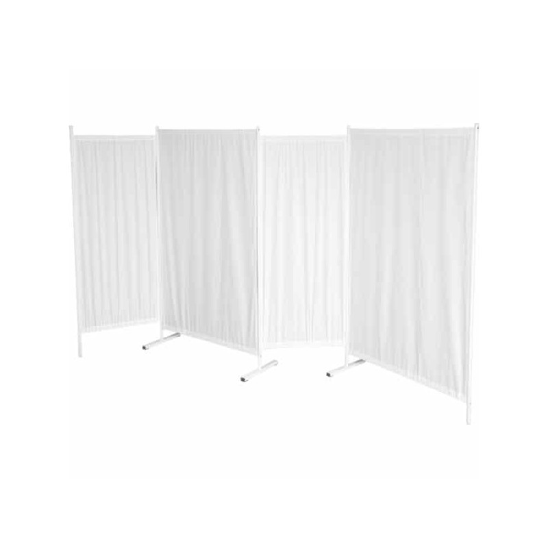 Funkcjonalny czteroelementowy parawan składany. Dzięki swojej lekkiej konstrukcji jest łatwy w przenoszeniu i montażu, a zamontowane zawiasy pozwalają na ustawienie każdego panela pod dowolnym kątem. Stopki w parawanie umożliwiają ustawienie go w linii prostej.