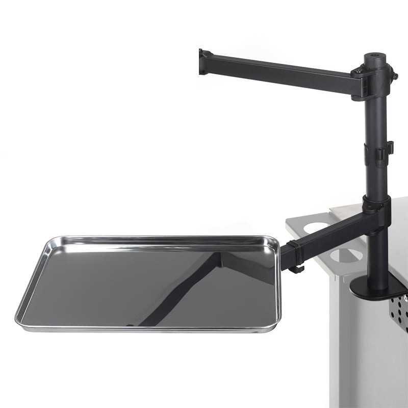 Uchwyt - wysięgnik z tacką do blatu stacji roboczej INKOO. Regulowana wysokość położenia uchwytu oraz trzy ruchome przeguby wysięgnika tacki.