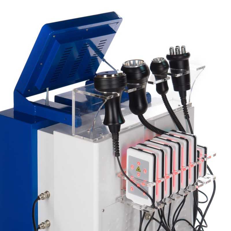 Profesjonalny aparat BeautySystem, BR-059 stworzony do zabiegów wspomagających odchudzanie. Urządzenie wyposażone w 8 padów lipolasera, jedną głowicę do Radio Frequency - Fale radiowe, jedną do Kawitacji Ultradźwiękowej 40kHz oraz dwie do masażu próżniowego - liposukcji.